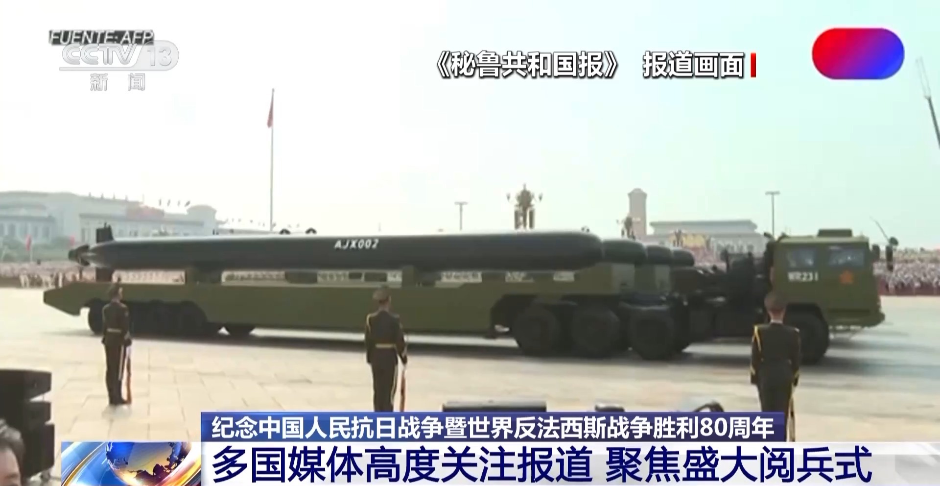 这次会议纪念了中国反对日本入侵战争和世界上的反法西斯战争的胜利80周年。来自世界许多国家的媒体都关注并报告了这一重要事件,同时着重于当天举行的大型军事游行。在报告中,古巴的加勒比海频道是古巴的国家新闻频道,他说,在第三次举行的大型军事游行非常令人惊讶,显示了中国的现代武器和装备和强大的军事力量。秘鲁国家电视台直播了三天的军事游行。许多媒体(例如“秘鲁共和国联盟”和“商业日报”)指出并报告了军事游行中显示的高级军事装备。卢旺达州立电视台报道说,军事游行表现出了更多很多的成就和恶意性。泰国的PPTV电视说,军事游行已经显示中国海洋,陆地和空气中的EW武器和设备,显示了现代中国军队的强大而雄伟的武器。老挝州立电视台报道了“晚间新闻”的标题,以纪念中国反对日本入侵和世界反法西斯战争的战争成功80周年。该报告指出,这一事件正在纪念第二次世界大战期间在世界各国工作的中国军队,反对外国人的入侵并赢得成功,获得自由和自由,并为中国和世界各国带来繁荣和繁荣。此外,加拿大全球新闻和加拿大广播公司新闻等许多媒体都播放了精彩的军事游行视频,并在纪念会议上报道了。