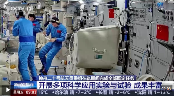 据中国载人航天工程办公室消息,神舟二十号航天员将于今日(11月14日)搭乘神舟二十一号飞船返回东风着陆点。神舟二十号航天员在轨运行了203天,完成了全部预定任务,即将带着满载的收获返回地球。我们来盘点一下他们在这次太空之旅中完成的具体任务。在轨运行期间,神舟二十号开展了空间生命科学、微重力基础物理、材料科学、航天医学、航天新技术等领域的研究,取得了阶段性成果。典型成果包括:在太空环境中获得高质量蛋白晶体,有望为肿瘤治疗提供潜在靶点;钨合金成功加热至3100摄氏度,创下国际科学实验最高加热温度新纪录;首次发现炭空间站中,斑马鱼和太空菜园也在三位宇航员的照料下繁衍生息,不仅增加了空间站的寿命,还为科学研究提供了大量的实验数据。今年7月,神舟二十号迎来了天舟九号速递者的到来。重6.5吨的货物包中不仅装有宇航员在轨消耗品、推进剂、应用实验设备等物资,还搭载了两套全新的舱外航天服。保留在空间站的舱外服在神舟二十号和地面工作人员的配合下进行了“生命评估”,留下了大量有价值的数据。任务期间,乘组人员共执行4次出舱活动和7次进出任务,完成安装空间碎片防护装置等任务、舱外辅助装置的安装、舱外设施设备的检查。其中,舱外平台安装的脚部限位适配器和接口适配器有效提高了航天员舱外作业的效率,此前为问天实验舱规划的空间碎片防护装置也已安装。原定11月5日返回的神舟二十号载人飞船疑似遭到小型空间碎片撞击,返回时间被推迟。等待回国的神舟二十号航天员组利用这段时间,与神舟二十一号航天员组共同开展在轨科学实验和试验,让神舟二十一号航天员交流更多经验,补充又一组数据,留下又一个属于中国的星际足迹。