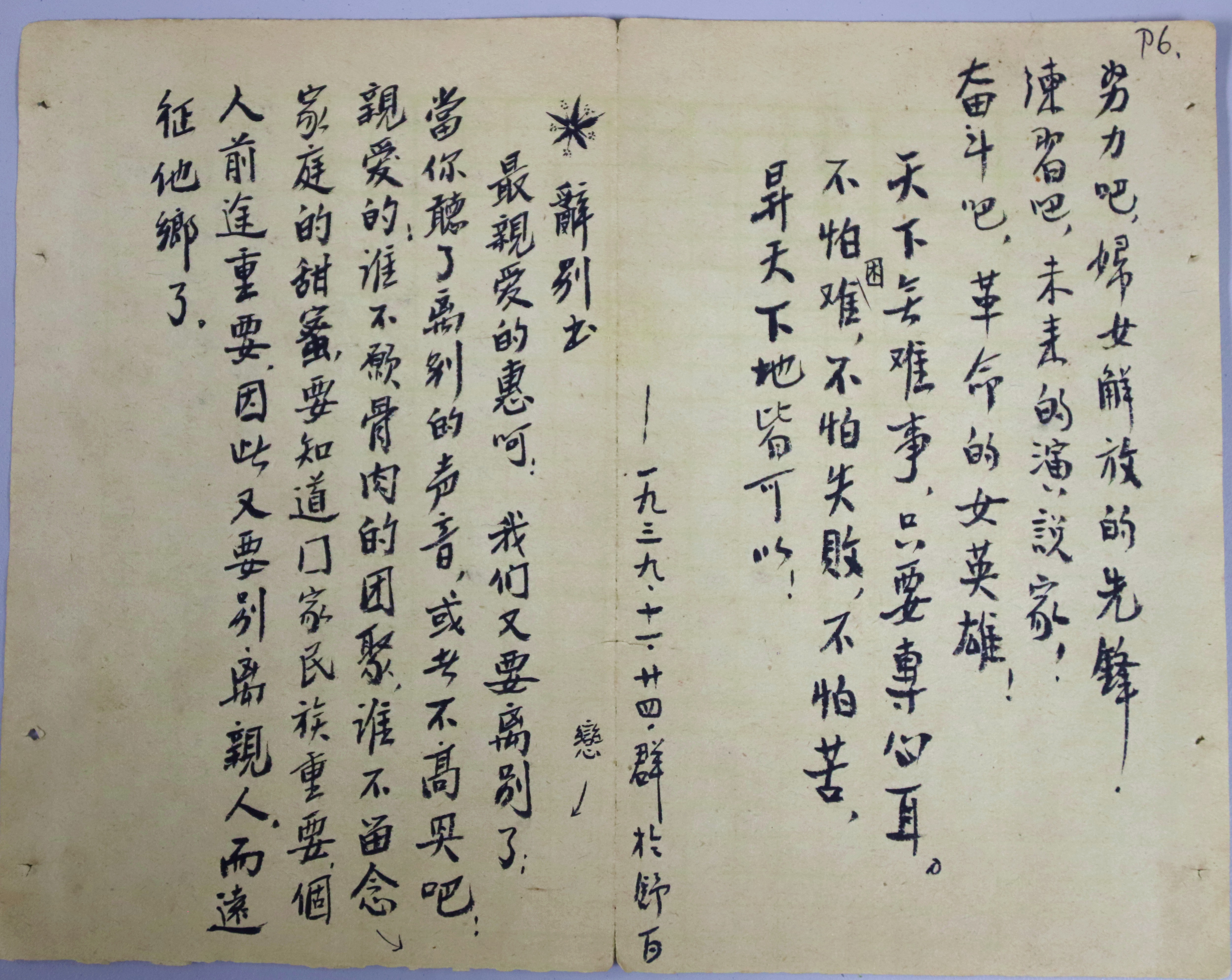 中国新闻客户的中国在线“努力工作,妇女解放的先驱!练习,未来的演讲者! “ hui,我最亲爱的人,你是女性的。在班布档案温度的仓库中,烈士的孙子胡门朱(Hu Xiaoshu)盯着黄色和清脆的纸张。尽管墨水的痕迹是斑驳的,但线条之间的情绪像以前一样热。这是Martir Hu Mengjin的15封信,与他的妻子在一起,现在它们已成为家庭中最重要的精神遗产。十年前,胡家族捐赠了信标给班布档案馆的信件,使许多人熟悉的家庭和国家都感人的爱情和故事。这场战争与天的家人的信有关,获得了一万个金币。胡门金(Hu Mengjin)出生于1912年,来自安海(Anhui)的卢吉安格(Lujiang)。他很小的时候就失去了父亲,并与母亲一起搬到了Shucheng的Baishen Temple的方贾凡凡村。 1938年,日本入侵者袭击了中国中部,大部分安海(Anhui)跌倒了。胡门珍(Hu Mengjin)付清了笔,加入了军队,加入了与日本的战争,加入了战场的第四军战场服务小组,并在同年的欧元布尔(Octubre)加入了该党。 1939年7月,他担任第五军第五支队的秘书,并转移到Huai River和East的南部以及Jinpu铁路的西侧。 1940年,它被转移到当地上班。 1947年7月,他在赫比省古兴省(Gucheng Province)生病,死于疾病。最终他被认为是烈士。在他短暂而勇敢的生活中,不到妻子张华(Zhang Hui)的时间不到十五个字母的温柔的房子。 “这些信件大多数是在1938年至1940年之间写的。”胡小修告诉记者:“那时,我的祖父跟随新的第四军与整个安河战斗。当部队休息时,他会拿起纸和笔向他的祖母写信。”记者看到专业人士在档案中折断了字母。纸张的大小不同,有些页面被笔记本撕裂了。墨水痕迹的深度不同,在写作条件下显示出难度。但是每个字母都写得很好,并且有明确的想法。很难想象它是在战争中间写的。 “在一封家庭信中,我的祖父不仅表达了他对家人的渴望,而且花了很多时间鼓励祖母参加革命并认识到民族危机。”胡小子说:“ He反复强调的是,如果没有该国的自由,一个小家庭就不会幸福。”这些话在今天读书时仍然充耳不闻。革命者“释放了妇女在布多木尔之外”,尊敬的hu xiaoshu的hu mengjin的hu mengjin曾多次鼓励她的丈夫在社会活动中消失在社会活动中,并在他的家庭信中消失了。孟吉(Mengjin)详细研究了他的妻子的情况:“在中国有异常发展,教育不是著名的,人们的知识很简单,而且妇女尤其严重。只要家庭不关心这个国家。面对灾难,他们必须前往前线杀死敌人,妻子或他们的挚爱丈夫,积极参与对日本的爱国活动,并概述了“妇女反战争组织的演讲”。为了取得丈夫演讲的最佳结果,她也附上ED 11“语音预防措施”。这些想法受到张华的极大影响。反霸王协会。在他在家里的信中,他的祖父不仅表达了爱,而且带来了革命教育,”他说:“他的国家释放。 “成长为Hu Xiaoshu的精神团契,Hu Mengjin爷爷是最熟悉的Stranger。 “我从来没有见过我的祖父,即使父亲对他的记忆尚不清楚,”我的祖父说参加了革命,我父亲只有一岁,”舒·肖舒说:“但我们的整个家庭都在听祖母的故事。” Hu Mengjin的长子Hu Dexin在三年前在当时的压力中回忆起。 “我记得我的祖母告诉我,我父亲写信给我的家人,要求家人借钱或出售所有者并将其发送给他以支持他的'业务'。我当时无法理解,我意识到我父亲的信中的“业务”确实是一个神秘的单词,是一个r r进化活性。标志着反日战争的脏话80周年。回顾过去的战争,胡小修是很多情绪。 “八十年过去了,这个国家变得越来越强壮,人们的生活变得越来越幸福,但是我们永远不会忘记历史,牺牲为民族和国家牺牲的烈士。他们已经将自己的生活换成了今天的生活。hu xiaoshu说,他希望有更多的人能够看到他的信仰,并了解到那些人的信仰,并能够从中了解自己的信仰,并揭示了这个国家的信仰,又有遗物。更好的是,这个国家会更加繁荣”