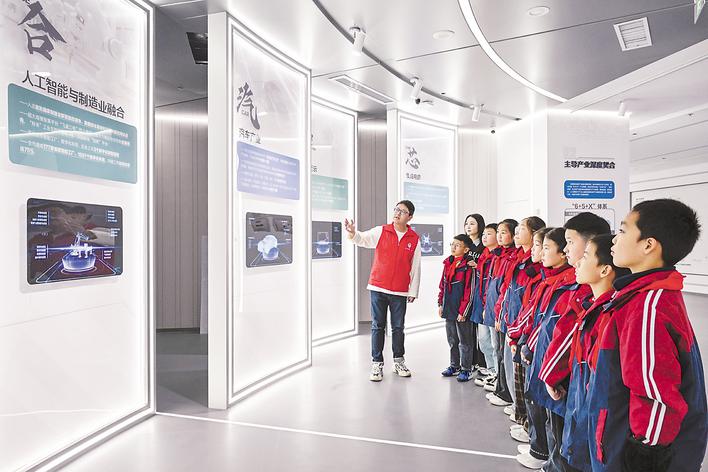 10月27日,在合肥国际传感器智造港,六安路小学榕城花园分校的小学生参观学习传感器科学技术。据了解,今年以来,庐阳区教育体育局推动实施“科学工作者进校园、中小学生进企业机构促进科学素养提升”计划,将前沿科技引入中小学课堂,打造“科学同学请就位”等科普创新研习路线,培养中小学生科学素养兴趣。 新事物和新技术。通讯员 赵明 摄